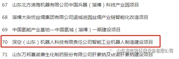 海吉雅環(huán)保與上海迪貝機器人科技有限公司共同投資深空(山東)機器人科技有限責(zé)任公司的智能工業(yè)機器人制造項目,同時列入省重大項目名單。