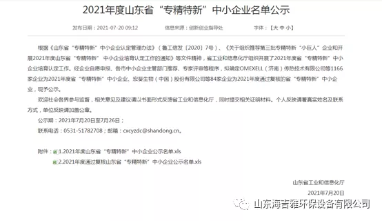 近日,我公司被山東省工業和信息化廳評為2021年度省“專精特新”中小企業。