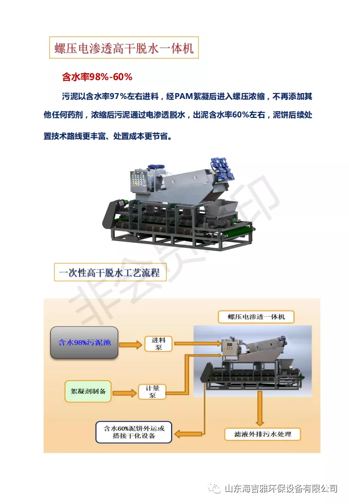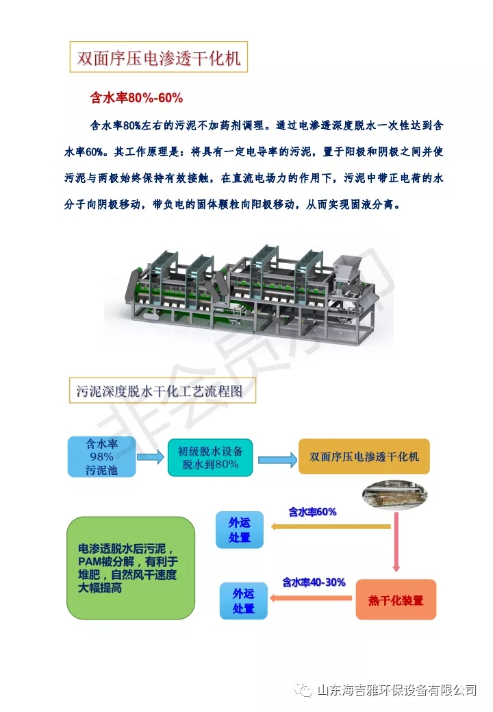 污泥是污水處理的必然產物,伴隨著污泥產生量越來越大,污泥對人類生存環境和經濟發展的影響日益突出,而脫水是污泥處理的重要環節,其目的是將污泥內大部分水分脫除,使固體高度富集,大幅減少污泥體積以節省污泥處理的成本。將污泥深度脫水處理至符合混合填埋的泥質要求,也可作為干化、焚燒、水泥窯協同處置、制磚等處理或處置技術的的預處理工藝,提高污泥整體處理處置工藝路線的經濟性,提高污泥熱值和節約能源,對于污泥的減量化及后續處置具有重要意義。